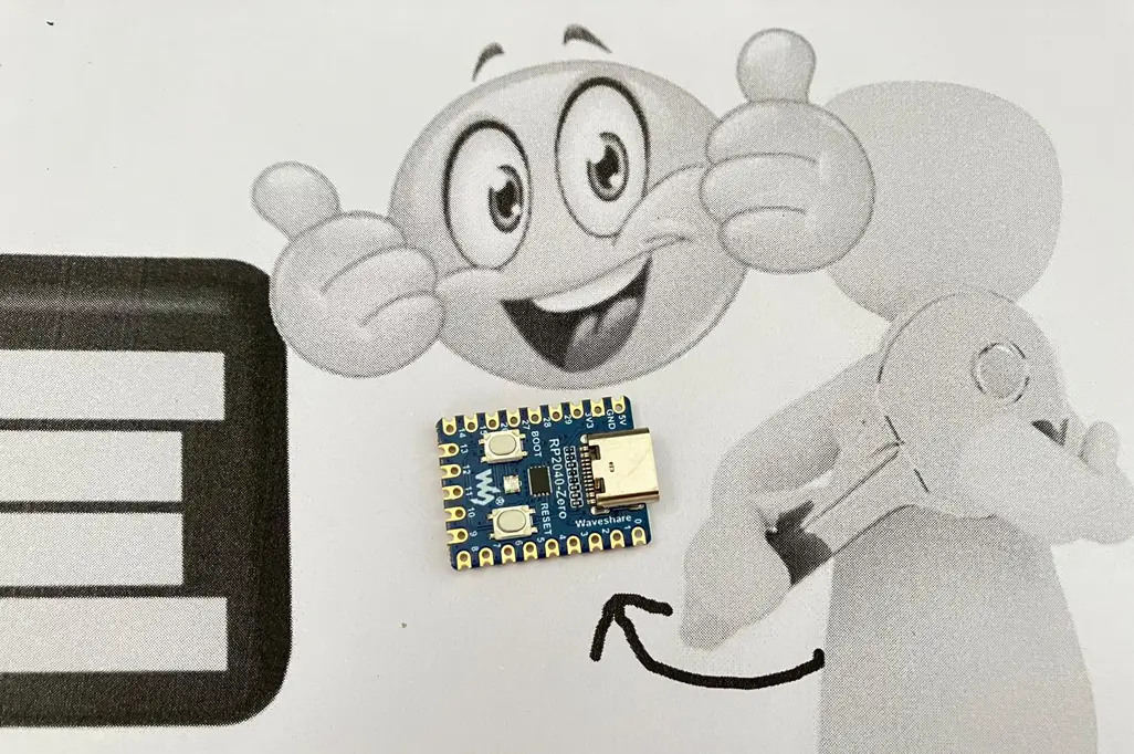 要给 RP 系列开发板刷固件很简单,以我手上这块为例,只需要按着板上的 BOOT 按钮再连接 USB 线,电脑就能识别到一个盘符,名称是 RPI-RP2